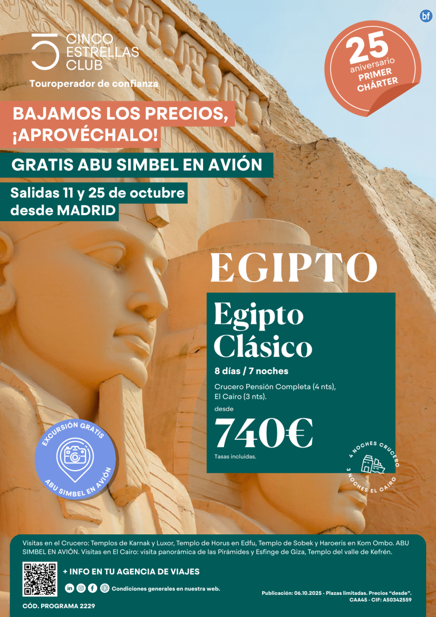 Últ.Plazas Bajamos Precios! Egipto Clásico Gratis Abu Simbel en avión dsd 740€ 8d/7n sal: 11,25 Oct dsd Mad