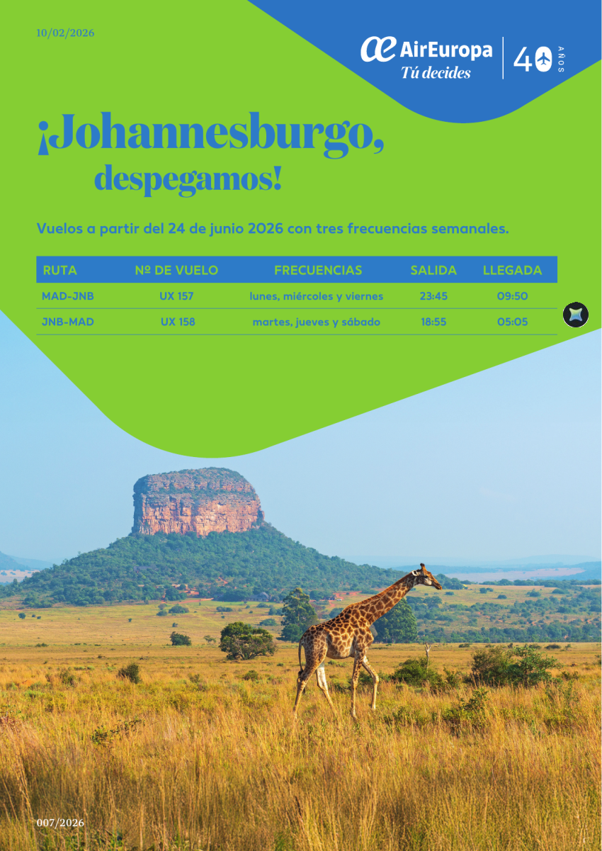 ¡Johannesburgo, despegamos! Vuelos a partir del 24 de junio 2026