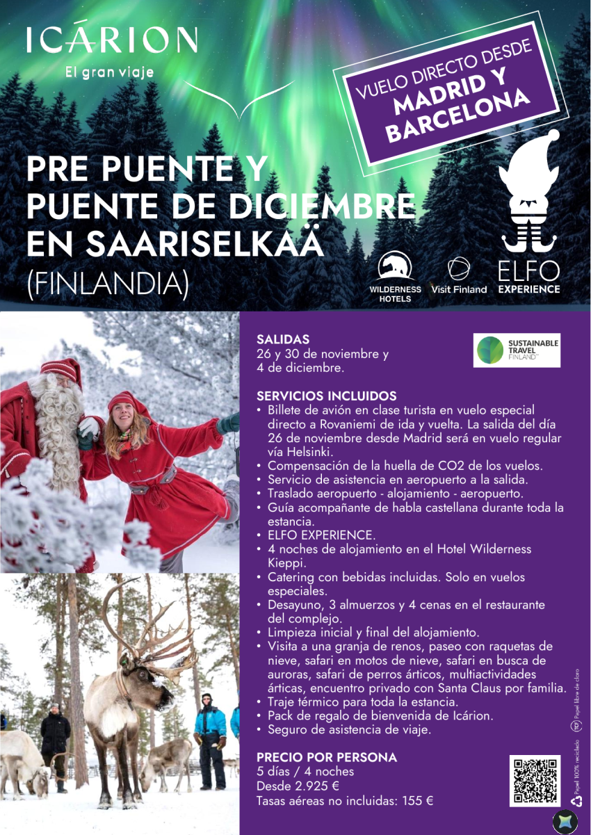 Pre puente y puente de diciembre en Saariselkä. Vuelo directo desde Madrid y Barcelona